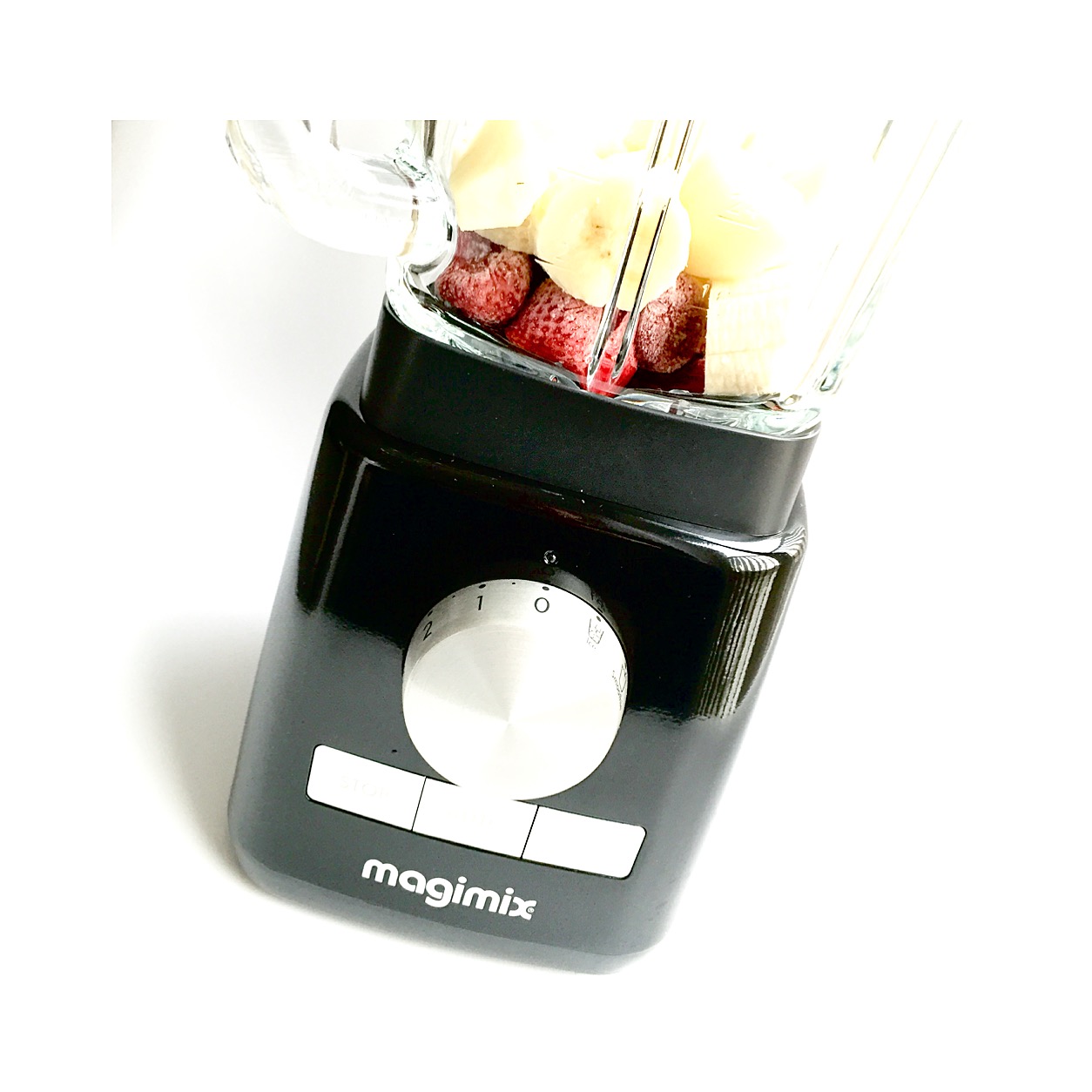 Ik gebruik voor mijn smoothies de blender van Magimix! Wat een geweldig ding! Moeiteloos maalt hij bevroren fruit of ijsblokjes!